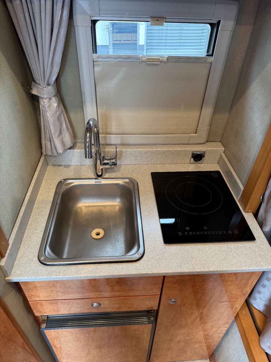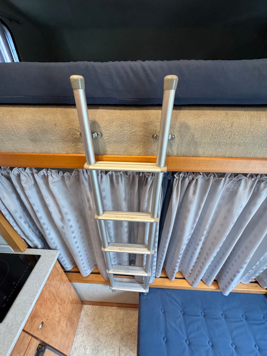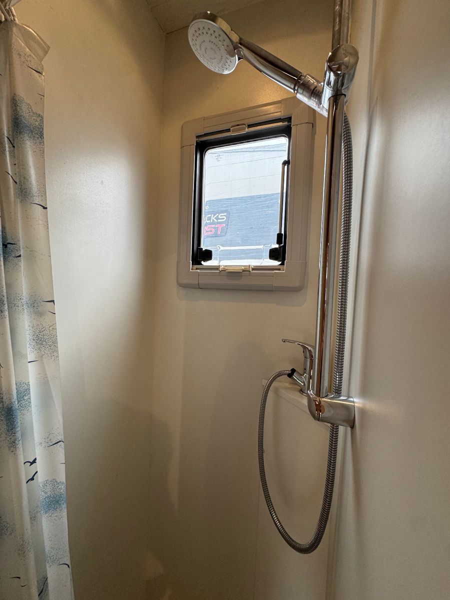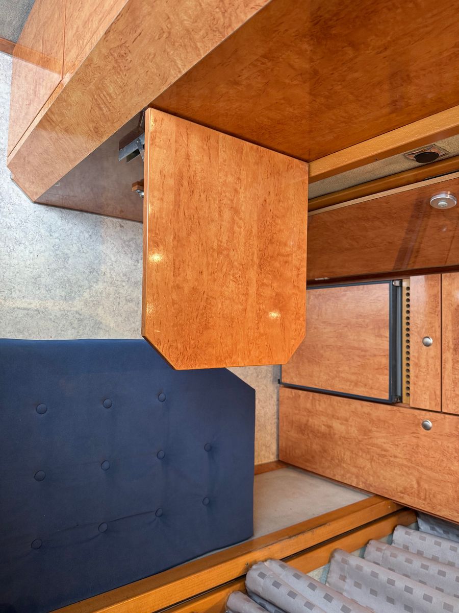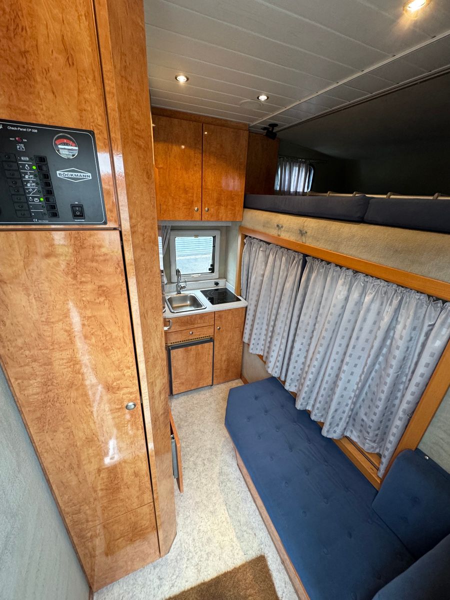 Großzügiges Bett im Alkhoven über dem Fahrerabteil Ausgestattete Küchenzeile mit Spüle und Herdt Bad inkl. Dusche Mobiles WC Ausklapptisch mit Couchecke Möglichkeit zum Umrüsten der Couch zum 2. Schlafplatz Keramik-Heizlüfter Fenster zum Pferdeabteil, in verschiedene Positionen zu öffnen