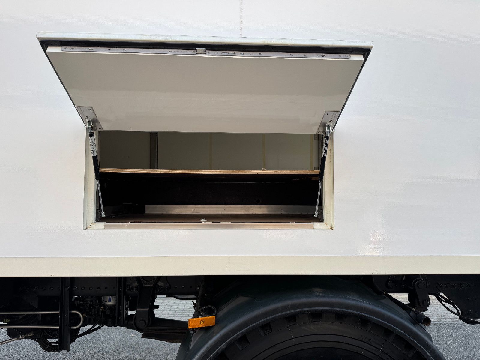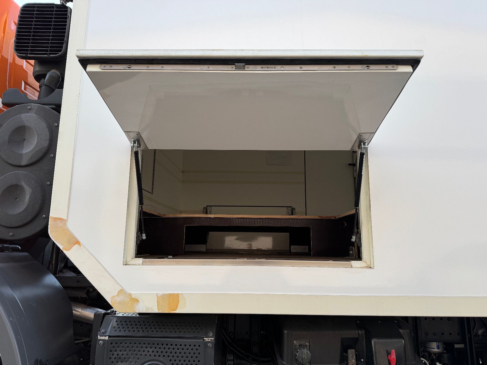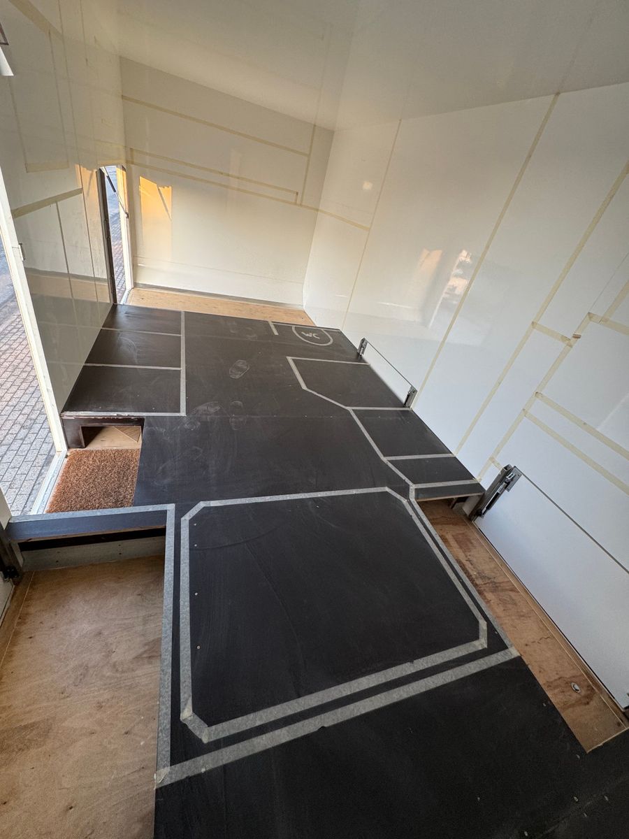 Hersteller: Pecocar Holland B.V. Pecocar Iso Koffer Leerkabine mit bereits ausgebauten, unterkellerter Boden / Zwischenboden um Leitungen zu setzen Gesamt Maße (außen) Leerkabine: Länge: 5700 mm Breite: 2500 mm Höhe: 2475 mm mehrere Türen und Fächer auf beiden Seiten großes Fach auf rechter Seite in Fahrtrichtung mit Stoßdämpfer 2x Hersteller Beschläge / Verschlüsse: KTC-Syslock Druckluftkessel bereits in Rahmen verlegt