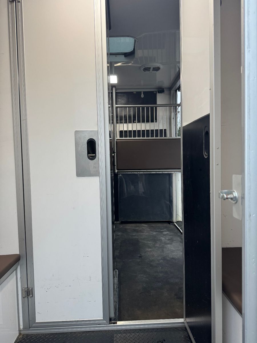 • Trennwand mit hoher Kopftrennung, separate Türen vor jedem Pferd