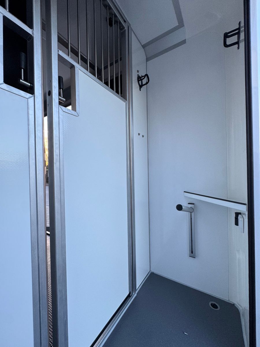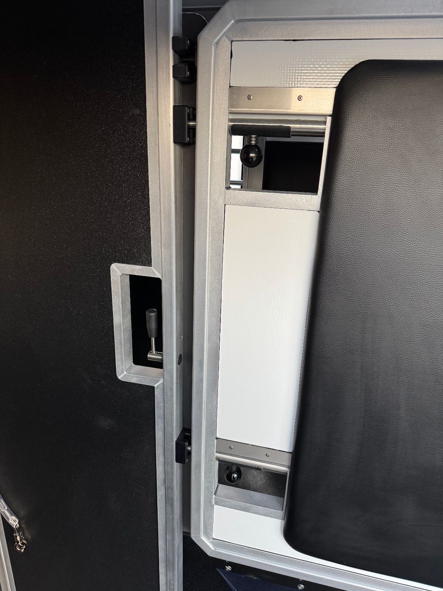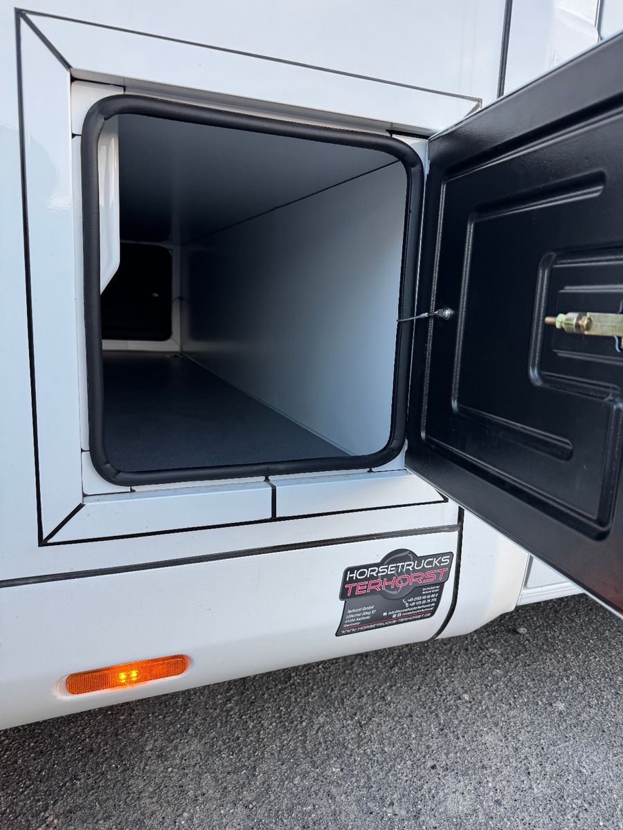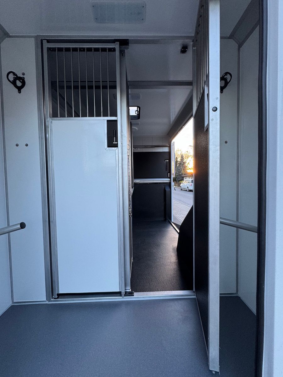 – Eine verstärkte Fahrzeugstruktur, verbesserte Materialien und hochmoderne Sicherheitsinnovationen sorgen für eine sichere und hygienische Transportkabine für Ihre Pferde.