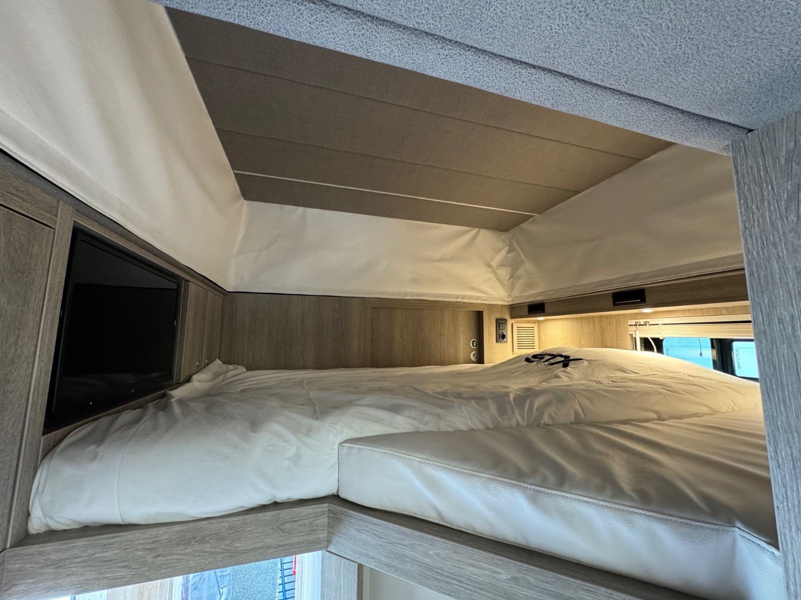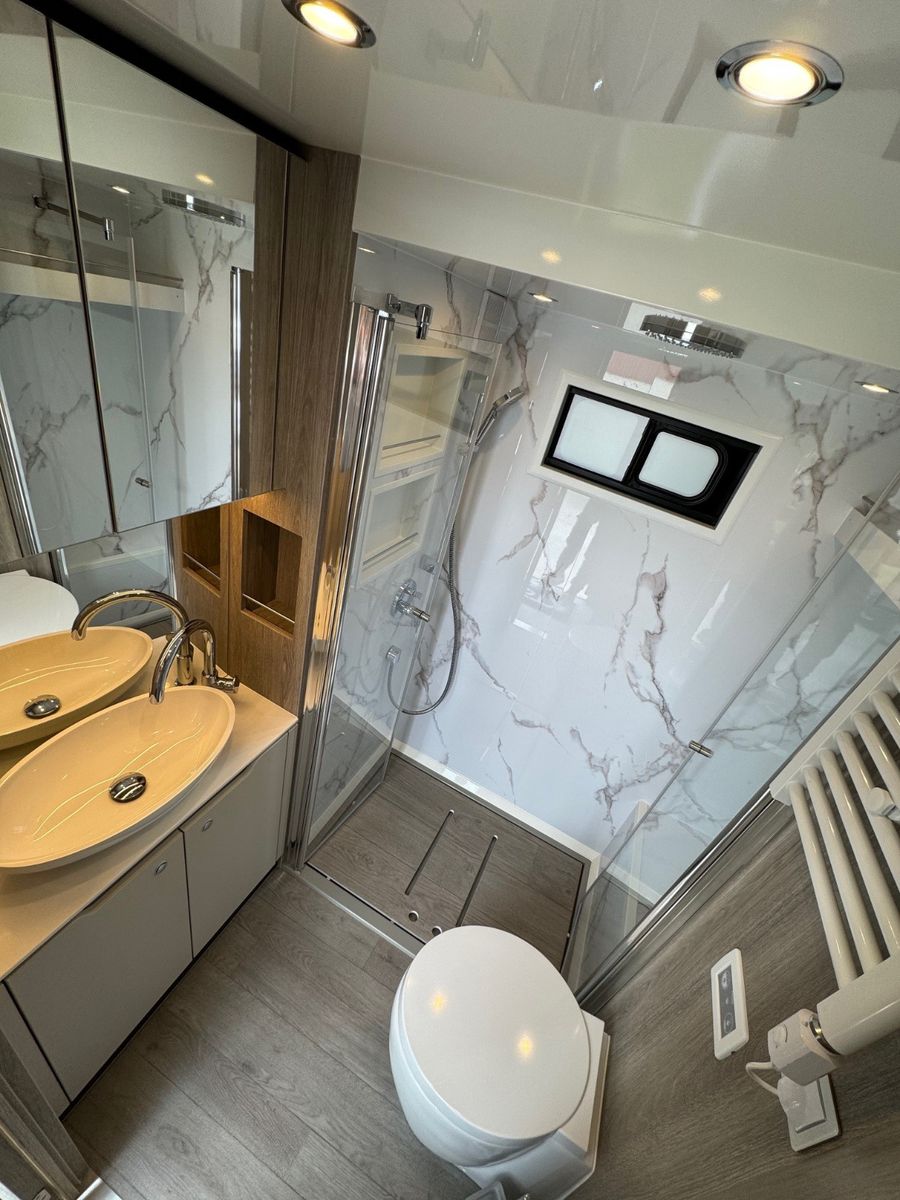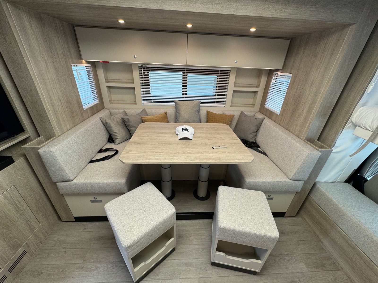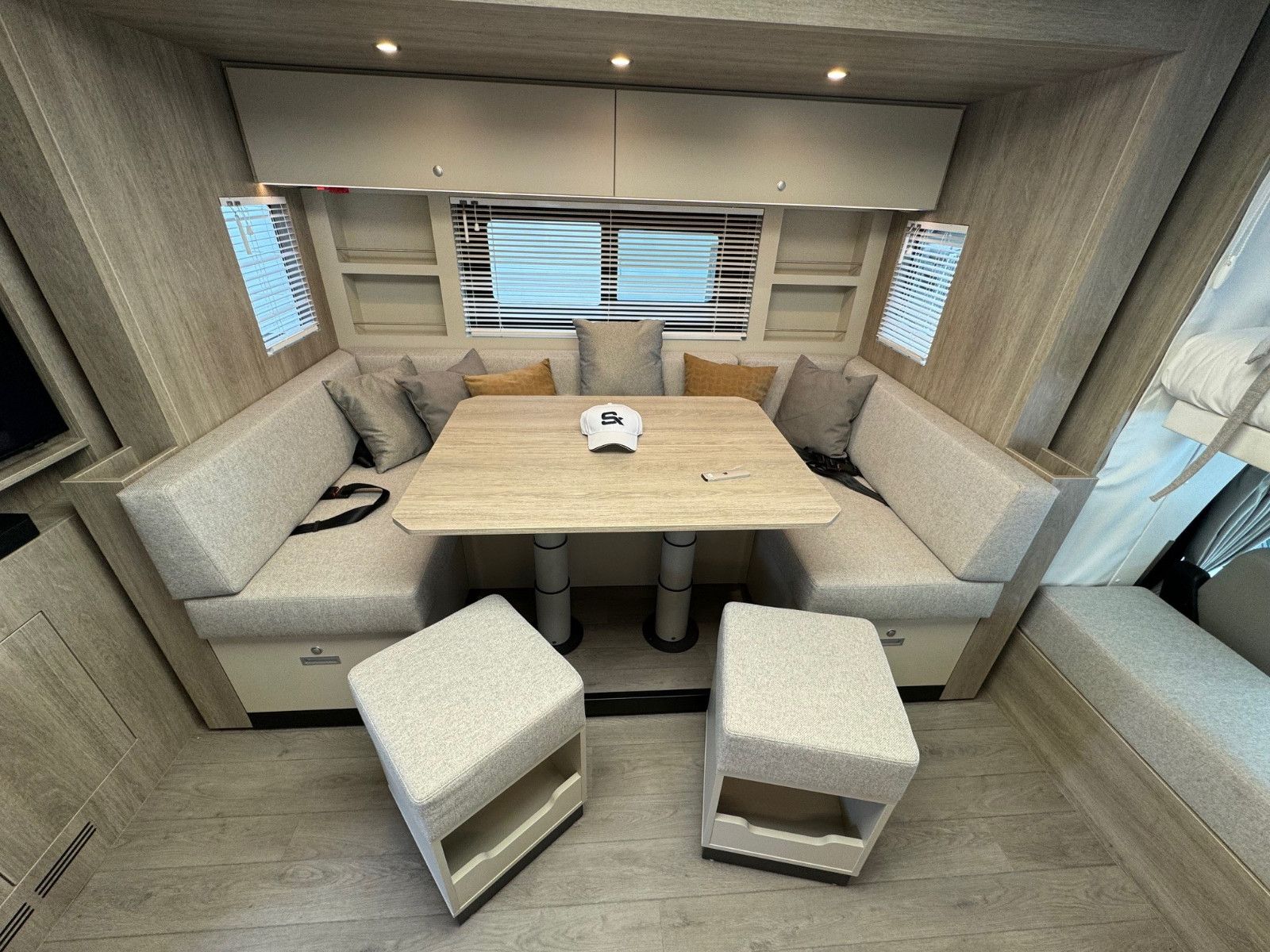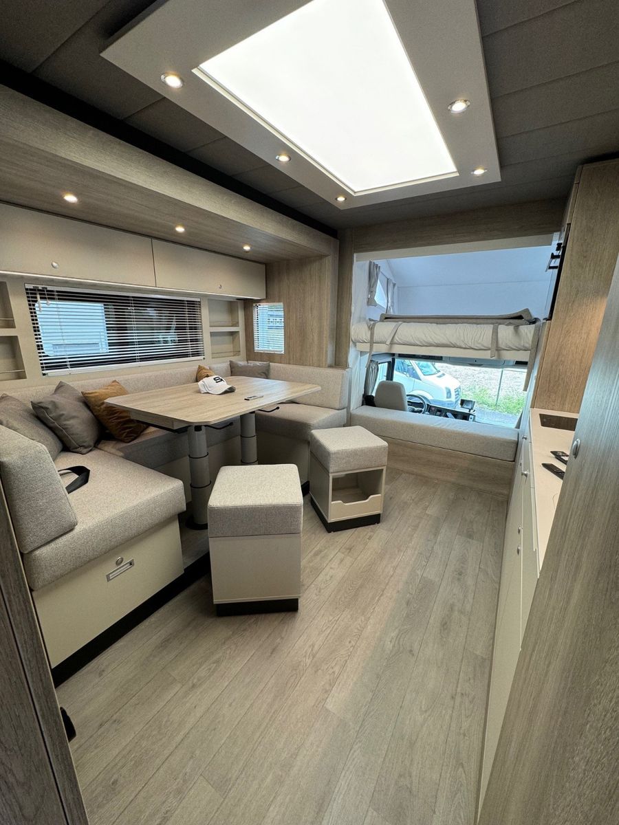 Pop-Out mit U-Sitzgruppe (umbaubar zum Schlafplatz) Push-Up mit großen Schlafplatz über dem Badezimmer Extra TV im Schlafplatz mit Push-Up verbunden mit Apple TV extra Eingang aus dem Pferdeabteil zum Schlafplatz über Badezimmer XL Schlafplatz im Führerhaus (Bett mit Liftfunktion) Samsung TV als Haupt-TV im Wohnabteil verbunden mit Apple TV Klimaanlage Diesel Standheizung Onan Stromaggregat Dusche mit Wasser WC Komplett ausgestatte Küche inkl. Backofen Kühlschrank mit Gefrierfach Wohnung unterkellert für viel Stauraum